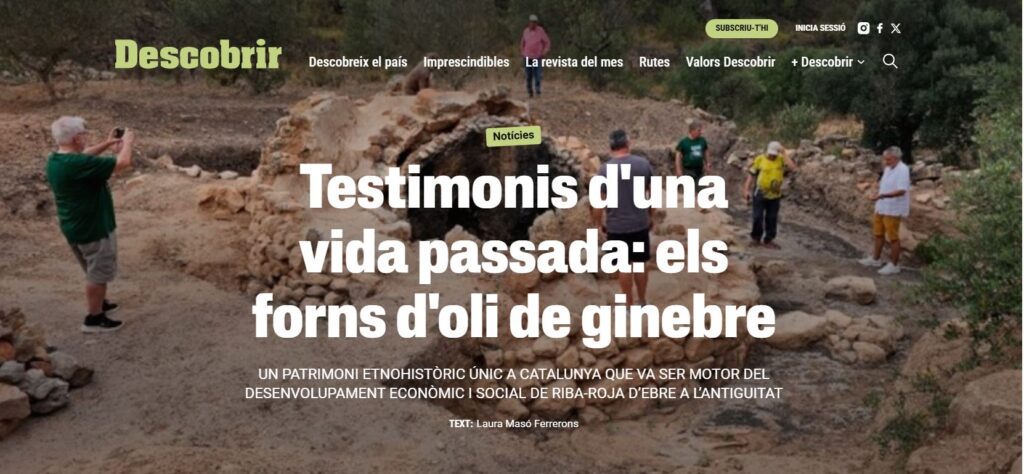 La declaració dels forns d’oli de ginebre de Riba-roja d’Ebre com a Béns Culturals d’Interès Nacional (BCIN), en la categoria de Zona d’Interès Etnològic, ha despertat un notable interès en la premsa especialitzada en patrimoni i territori.