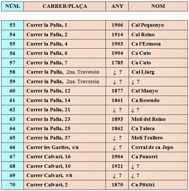 Desconeixem els noms d’algunes cases, per tant, agrairem els pertinents aclariments.
